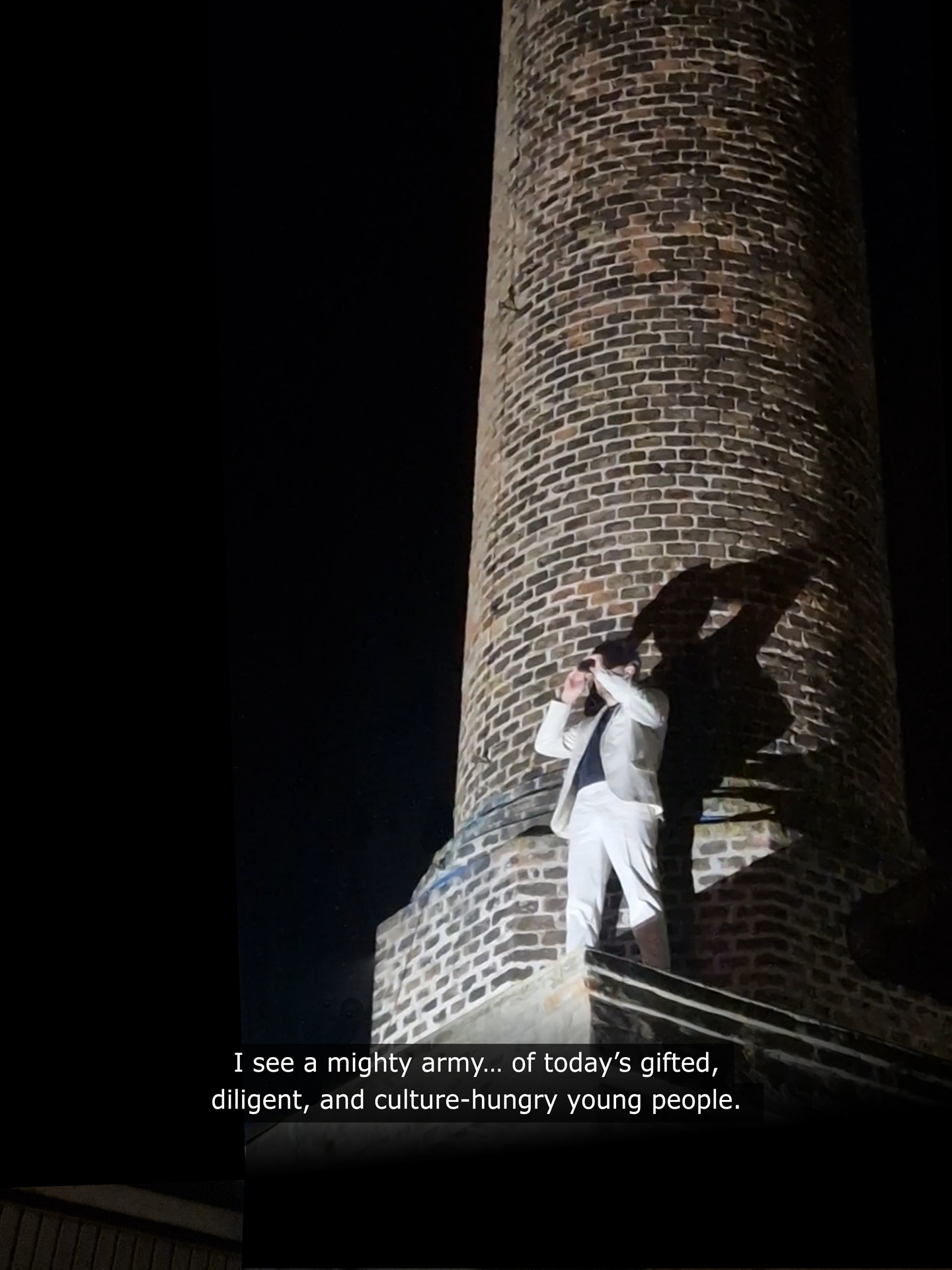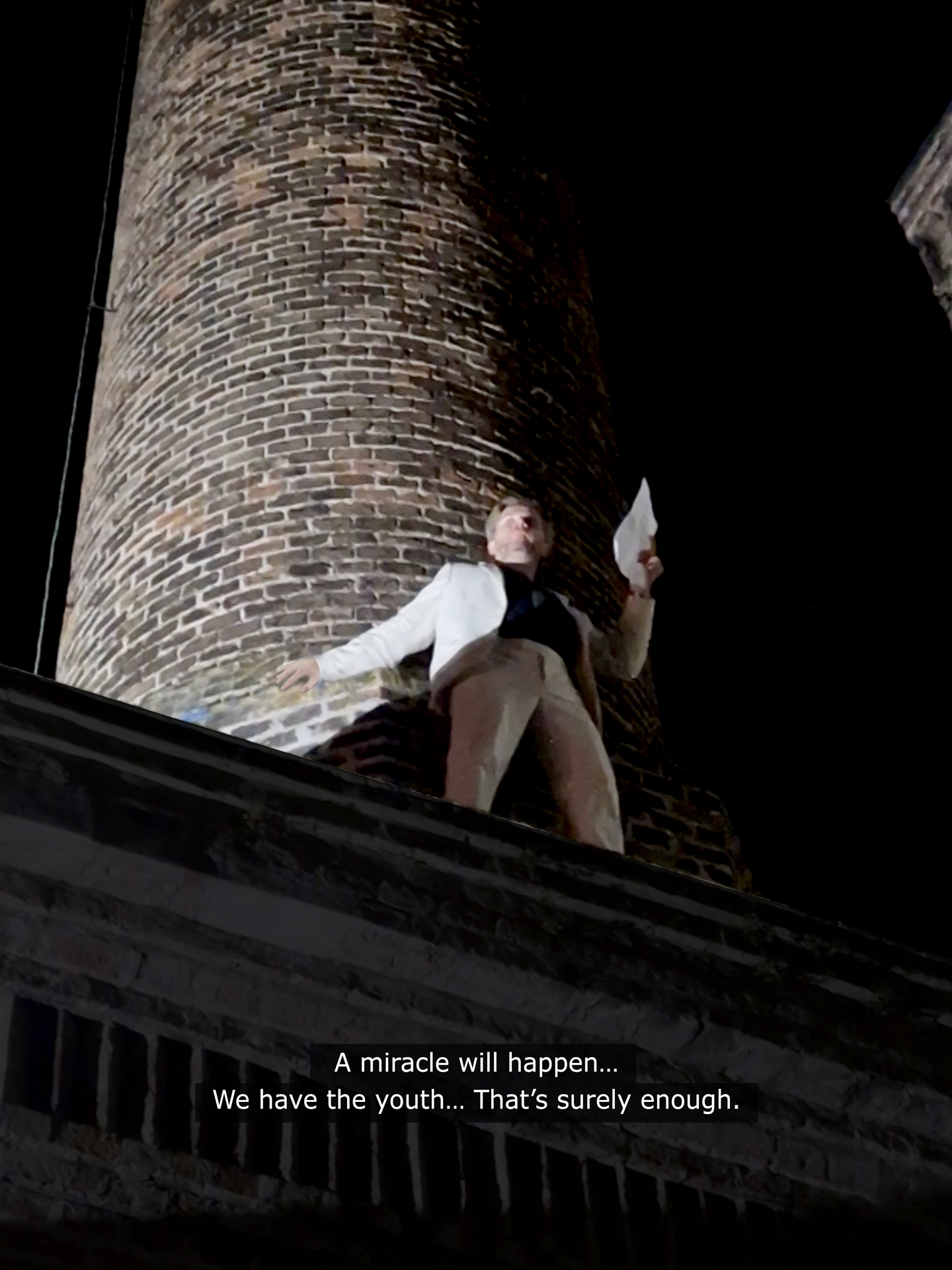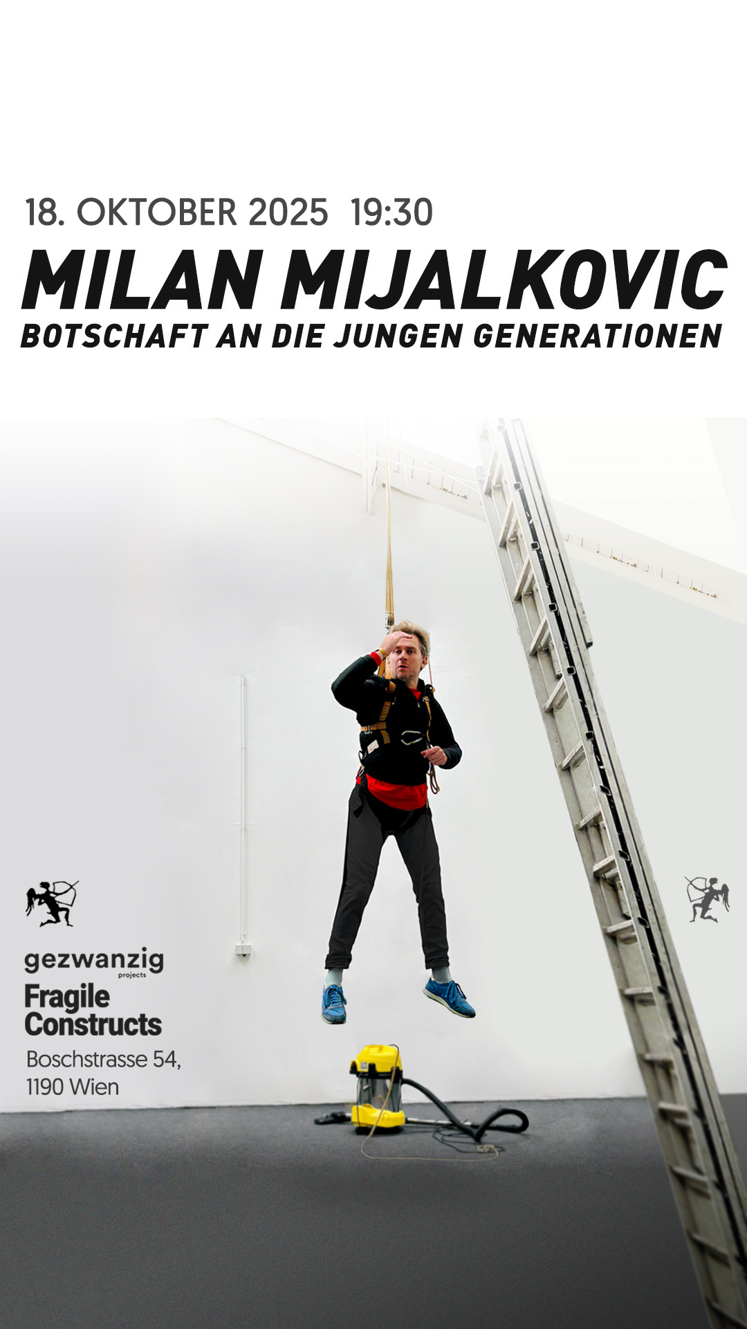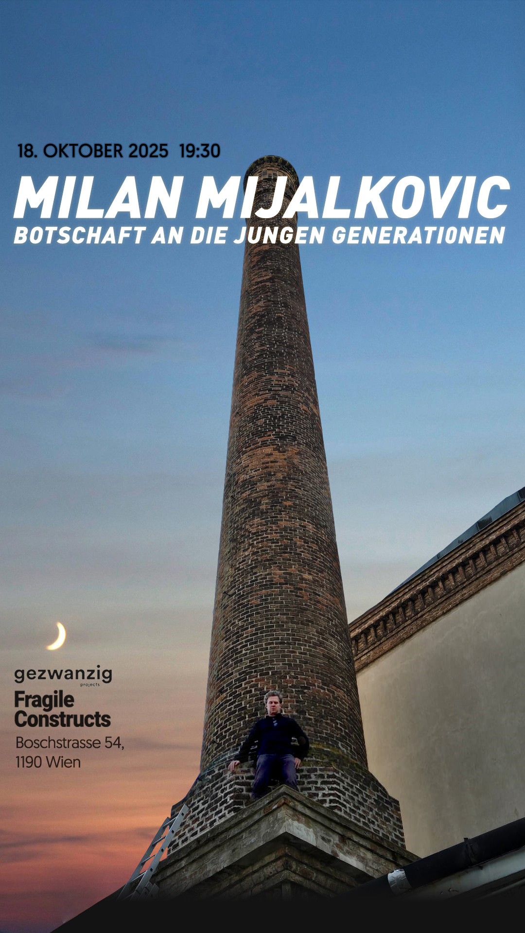 (Botschaft an die jungen Generationen)Within the framework of the exhibition Fragile Constructs, a performance unfolds — a speech about the public word, which by now weighs lighter than hot air, and about responsibility in a time shaped by war, indifference, and consumption.